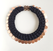 Elastic necklace. Black color with copper circles. Size 50 cm length x 6,0 cm width. Copper chain. Washable Product.